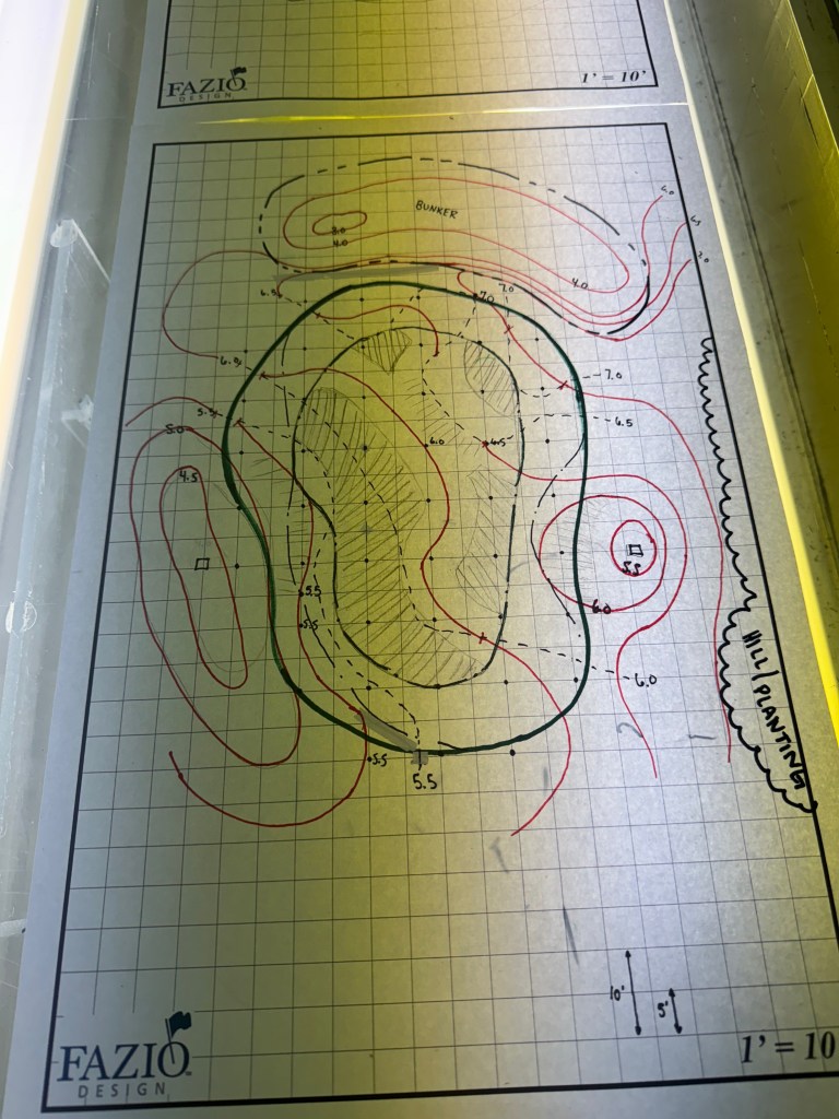 At Fazio Design, our work spans everything from new course development to renovations and restorations of existing courses. Every project starts with the land but quickly becomes a collaboration between engineers, shapers, superintendents, owners, construction teams, municipalities, and us. My role and tasks sit within the collaboration between these teams. Translating ideas about how a golf course should play and feel into drawings, renderings, and information that is used while being built in the field and shown to clients/owners.
